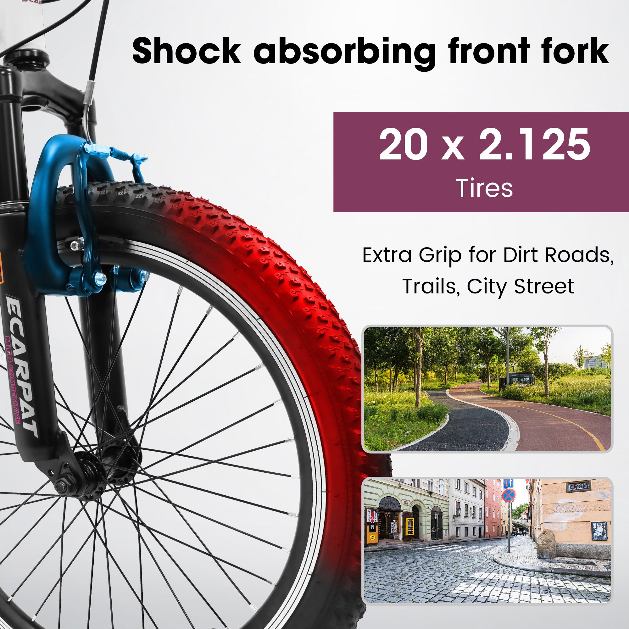 Wide, 2.125 in. all-terrain tires with strong puncture ressistance soften the little bumps and stick to the trail for a smooth, stable ride