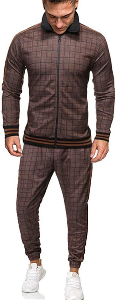 Men's 2 Pieces Tracksuits Jacket and Pants Casual Full Zip Running Jogging Athletic Plaid Sports Sweatsuits