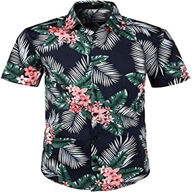 Men's Hawaiian Floral Short Sleeve Shirt Casual Flower Button Down Slim Fit Shirts